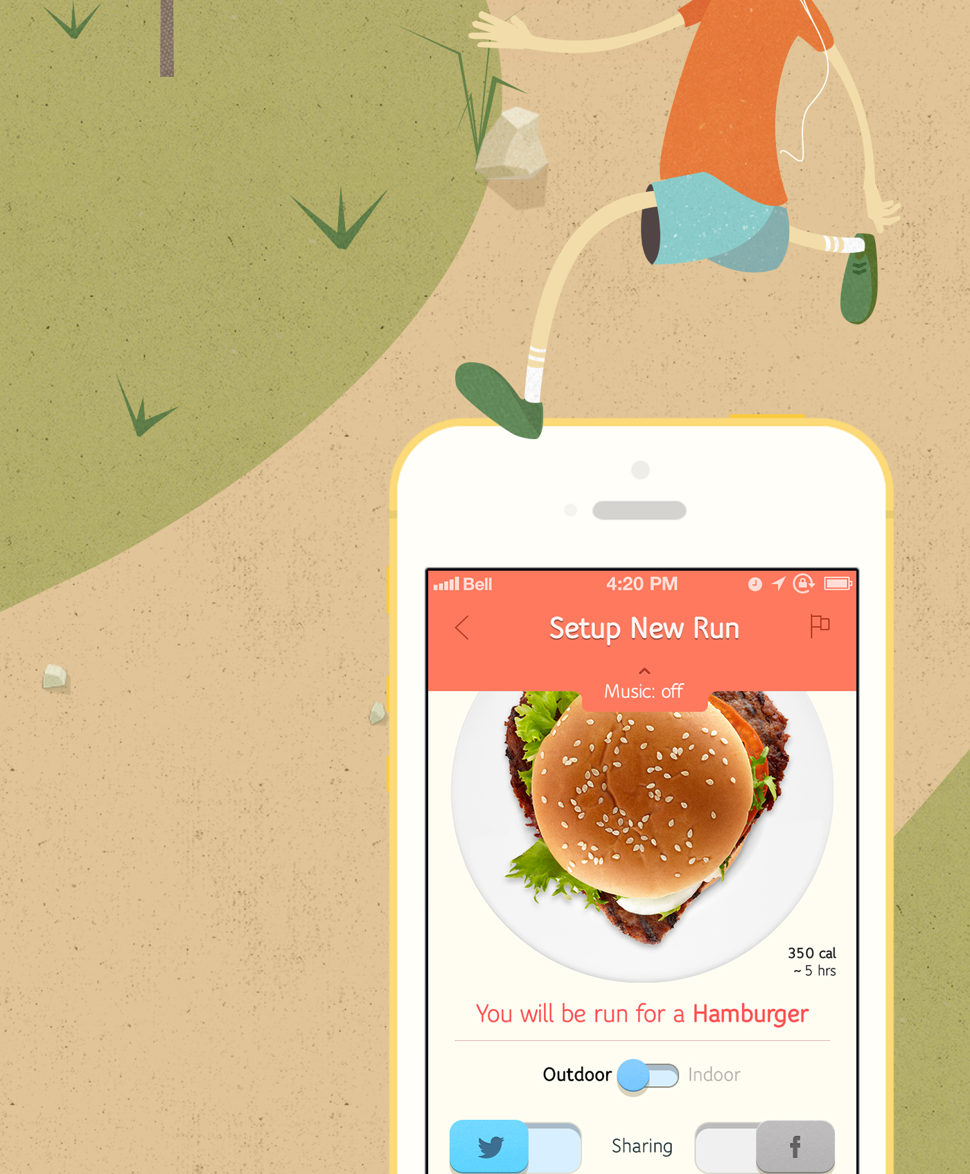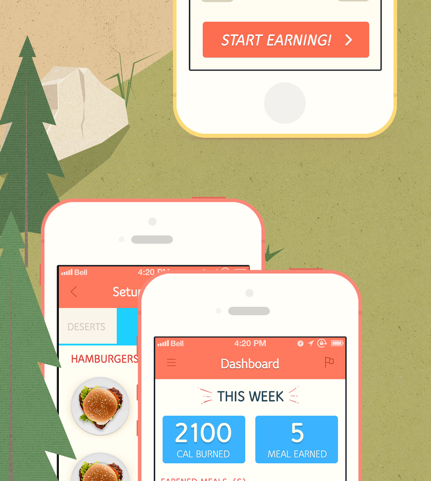 Earn My Meal takes off the burden of counting calories, instead you pick the food you want to eat and start running. http://goo.gl/dJ1gJG Project Owner: Deniz Vlahos Development: Studio Nord